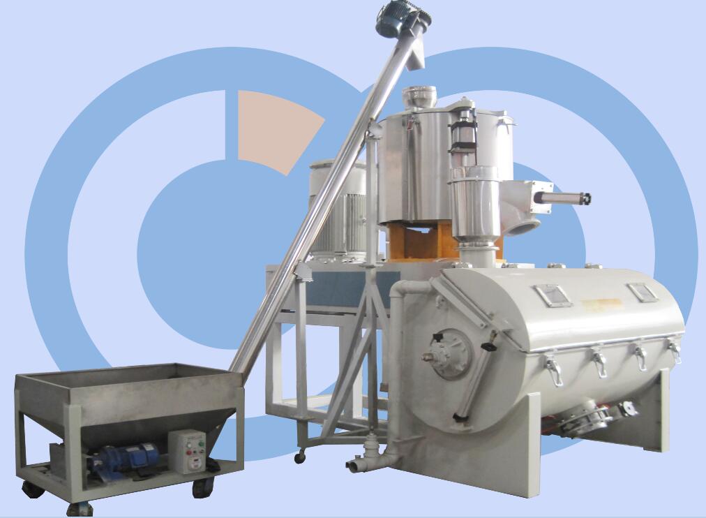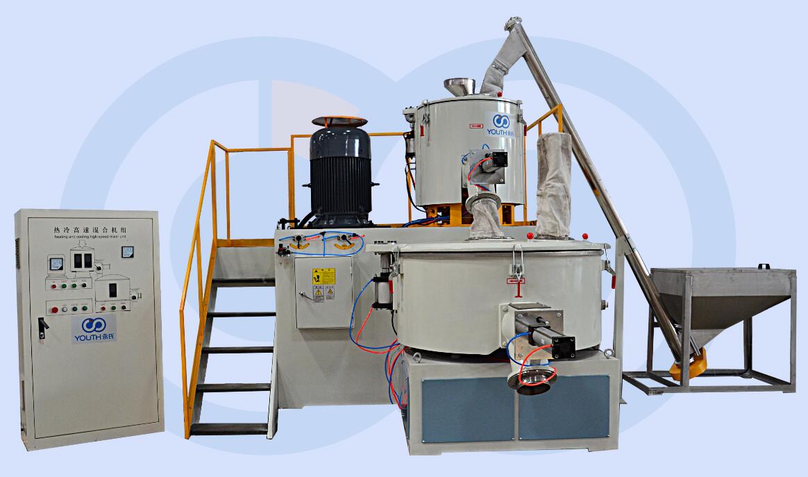 PVC高速混料機(jī)將熱混與冷混工藝結(jié)合在一起,完成熱混的物料自動(dòng)進(jìn)入冷混使其迅速冷卻,排除殘余氣體,并可防止結(jié)塊?!KR-L系列高速混合機(jī)組具有自動(dòng)化程度高、混合效果好、功能全、結(jié)構(gòu)緊湊、外形美觀等特點(diǎn),是生產(chǎn)管材、型材配混的理想設(shè)備。